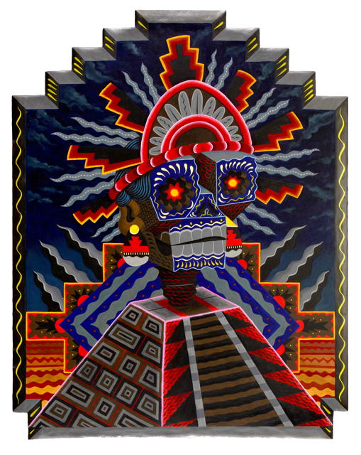 Brandon Maldonado was born in 1980 in Denver, Colorado and raised in Albuquerque, New Mexico where he grew up on the graffiti art of his barrio surroundings. He rejected the academically painted southwestern landscapes which seemed a far cry from the graffiti filled streets of his personal reality. However, the culturally rich environment of New Mexico made a lasting impact on Maldonado's work, which often explores themes associated with Mexican culture. Being primarily of Northern New Mexico descent, Brandon has a fascination with the history and culture of the land, as well as its living and historical ties to the story of Mexico and its mestizo legacy.